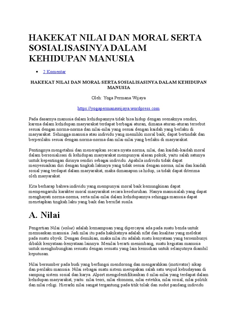 Moral Value Adalah : Hakekat Nilai Dan Moral Serta Sosialisasinya Dalam Kehidupan / Morals and values are guiding forces in the lives of individuals as they give them a sense of direction as also a code of conduct when interacting with others in the society.